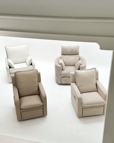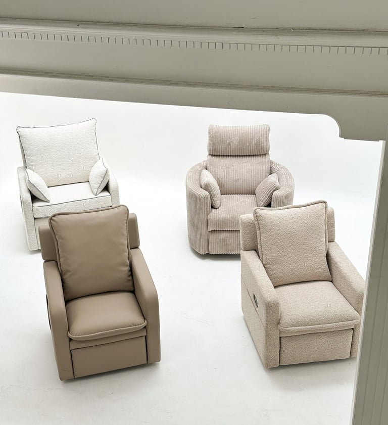 Enhanced with electric recline, swivel and rocking motion, and a USB charging port, The Plush brings unmatched convenience to pure comfort. While it may trade a touch of the Classic’s sleek aesthetic for a fuller, cozier form, it remains beautifully inviting.
